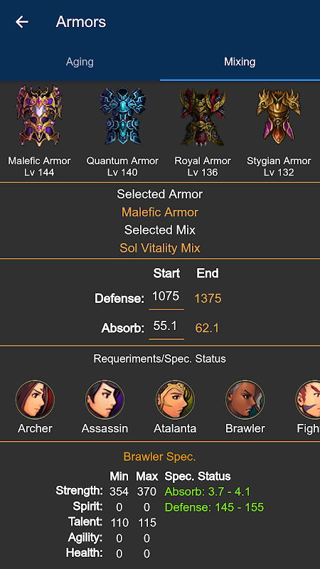 - Perfect stats of the items.