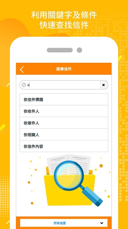 -Duża funkcja wyszukiwania, możesz wyszukiwać słowa kluczowe według różnych pól (odbiorca, nadawca, osoba powiązana, treść listu) i wyznaczonej skrzynki pocztowej.