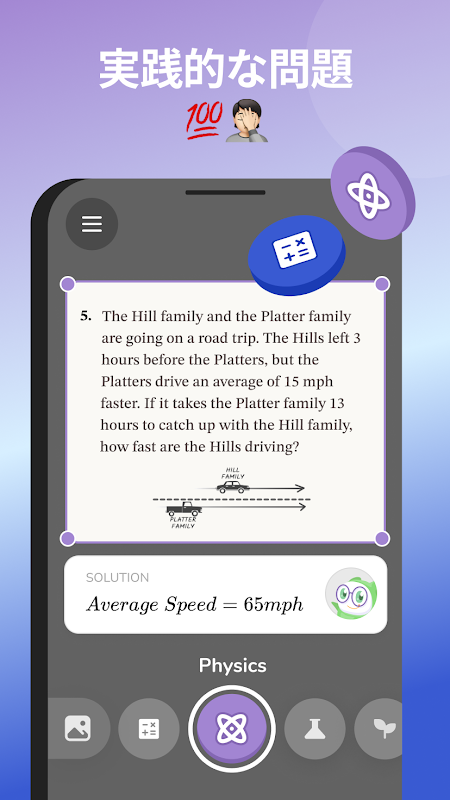 Rozwiązuj złożone problemy dzięki szczegółowym objaśnieniom, po prostu robiąc zdjęcie problemu. Uzyskaj spersonalizowane wskazówki, ucząc się podstawowych umiejętności i sprawdzając swoje zrozumienie, zadając pytania od nauczyciela AI. Przydatna aplikacja do rozwiązywania zadań tekstowych, matematycznych i przedmiotów ścisłych na poziomie uniwersyteckim. Do tej pory rozwiązaliśmy ponad 1 milion problemów i możemy zapewnić pomoc w odrabianiu zadań domowych dla szkół podstawowych i szkół w dowolnym miejscu i czasie.