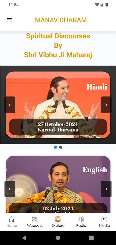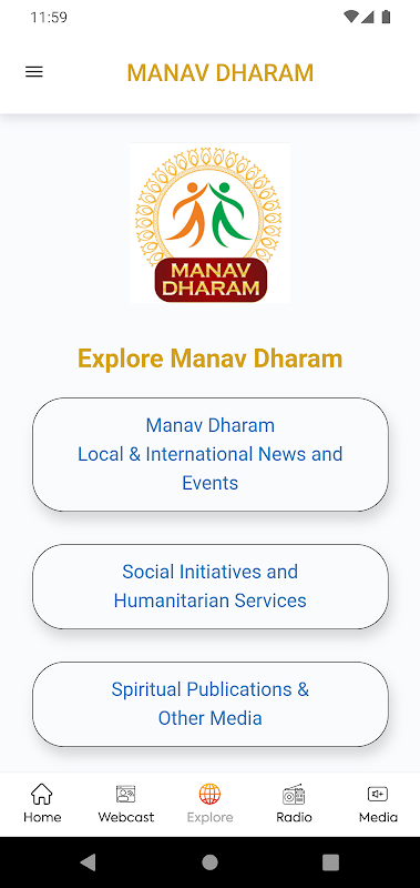 Ta aplikacja zapewnia łatwy i wygodny sposób dostępu do multimediów i informacji w różnych formatach dotyczących najważniejszych wydarzeń organizowanych przez „Manav Dharam” i jego