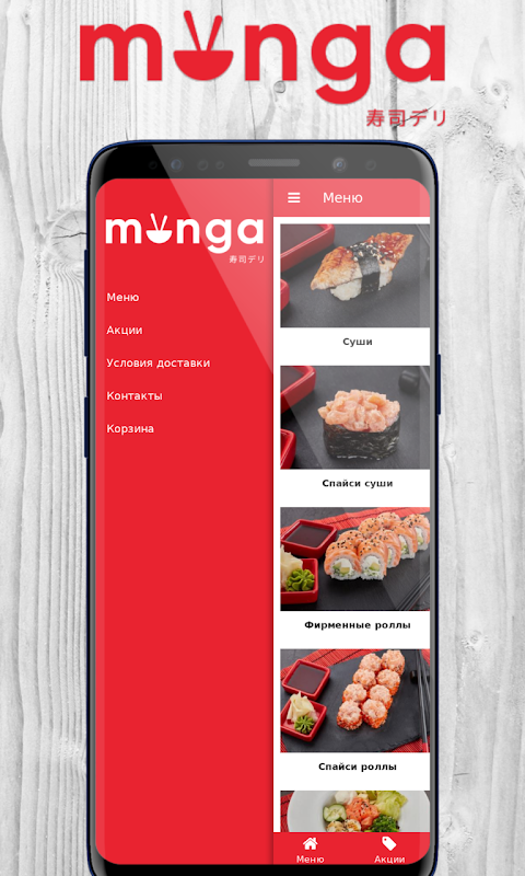 Zainstaluj aplikację MANGA SUSHI i zamów dostawę pysznych potraw za pomocą 2 kliknięć.