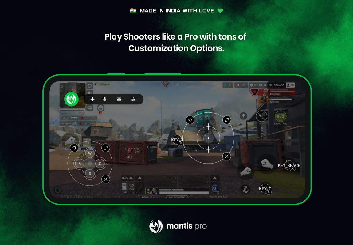 Mantis został specjalnie przetestowany z głównymi grami na Androida, takimi jak Apex Legends, Genshin Impact, PUBG, CODM, World War Heroes, Pokemon Unite, Wild Rift itp., aby zapewnić Ci wrażenia z gier na Androida podobne do pecetów.
