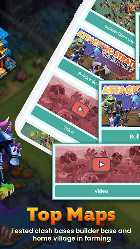 - Awesome base maps from town hall 4 to town hall 14: war, farming, trophy, etc.