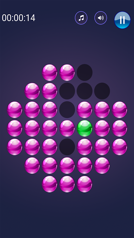 2. Wybierz marmuru od pustego miejsca. Następnie wybierz pustą lokalizację. Wybrany marmur przeskoczy na sąsiedniej na pustym miejscu (obecnie wzór będzie „pustymi Empty marmurowe” lub „marmur pustymi Empty”). Bliski marmur zostaje usunięta przez to. Podobnie, przejdź na usunięcie kulki, jeden po drugim, aż osiągnie stan, kiedy nie ma dwóch kulek wraz z przyległym wolne stanowisko.