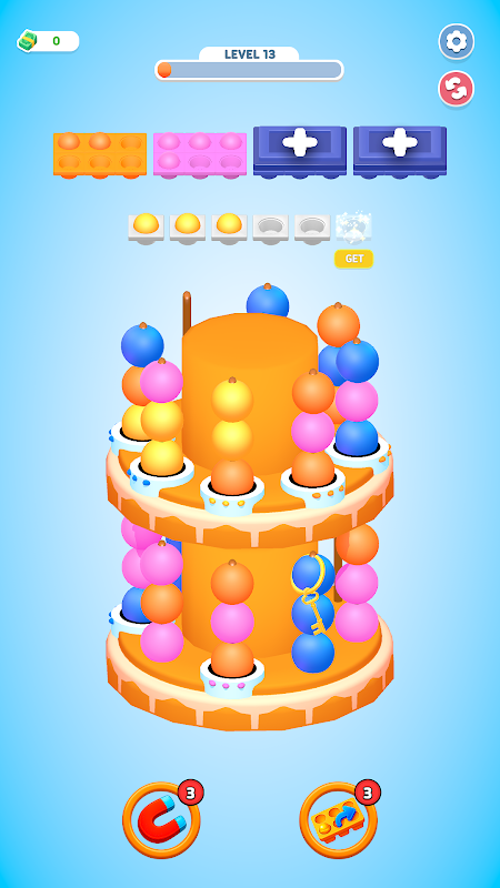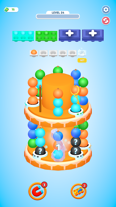 Wypełnij slot 6 kulkami w tym samym kolorze, aby go zapełnić.