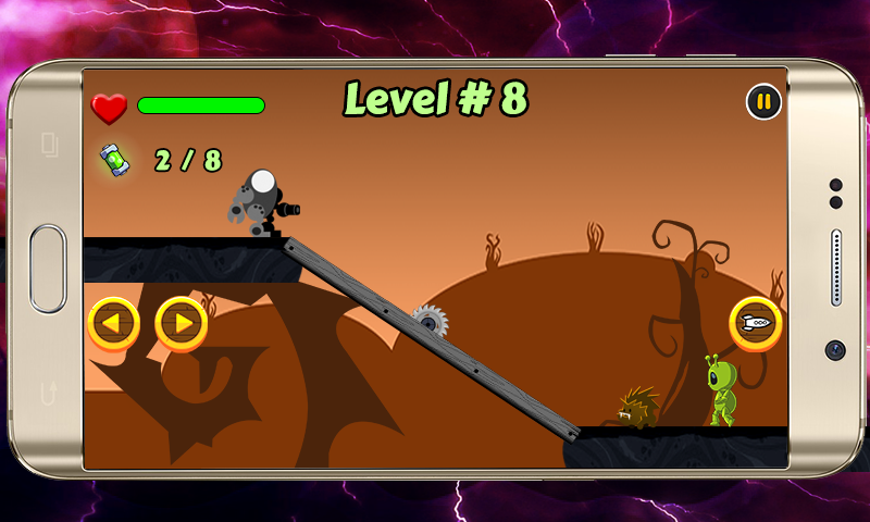 Be a space warrior on a planet that is new for you with whole a lot of creatures which are not only deadly but also very strange and different in their shapes and noises. Be a mighty warrior and fight these peculiar creatures to save the planet and your life. While on the mission of saving the Planet, you will be provided help in the form of lives and energy. All you need to do is to find those energy cans while killing the enemies and crossing the obstacles. This game is so full of challenges that it will keep you engaged in its entertaining gameplay making it difficult to put your smartphone down.