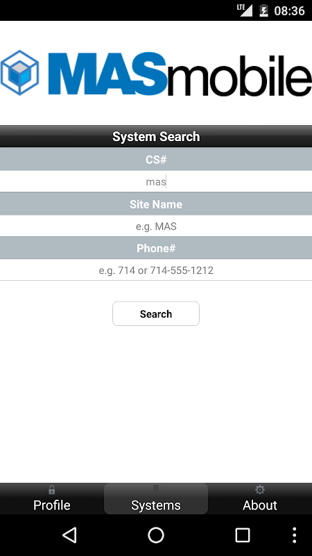 Users may use MASmobile to view and manage monitored systems within their business. Various features include Systems Details, System Test, Event History,Test History, Zones and Contacts.