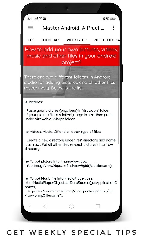 Witamy w świecie programowania na Androida, tutaj w tej aplikacji dajemy Ci praktyczne i nudne, duże, wolne od teorii podejście do nauki programowania Android.