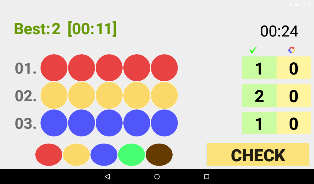- The green tick indicates the number of correct colours placed in the correct position