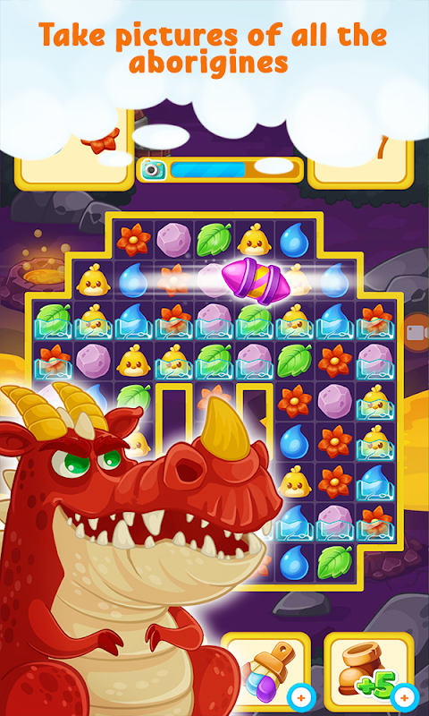 Głównym elementem naszego fotografa jest dżungla, dlatego jest on zapraszany do wybierania w poziomach trzech gier z rzędu i bardziej zielonych liści 🌿 drzewa. Na dalszych poziomach należy zebrać pewną liczbę kryształów ✨, niedźwiedzie, rośliny 🌿 itd. Bohater musi zebrać więcej elementów w rzędzie.