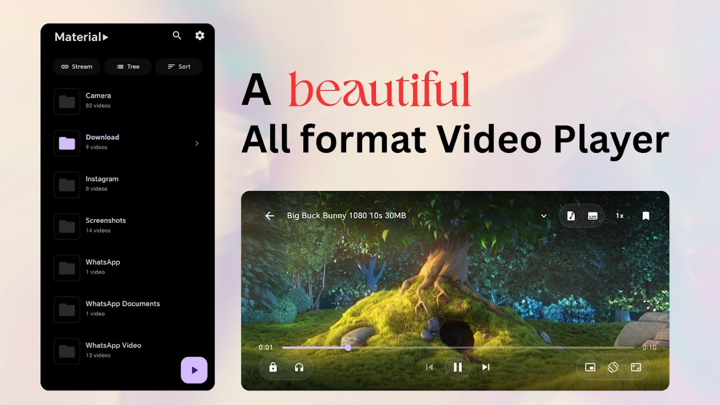 Material Video Player to profesjonalny odtwarzacz wideo dla systemu Android, który łączy w sobie zachwycający design z potężną, wszechstronną funkcjonalnością. Dzięki obsłudze wszystkich formatów wideo, ta aplikacja zapewnia niezrównane wrażenia wizualne bez reklam.