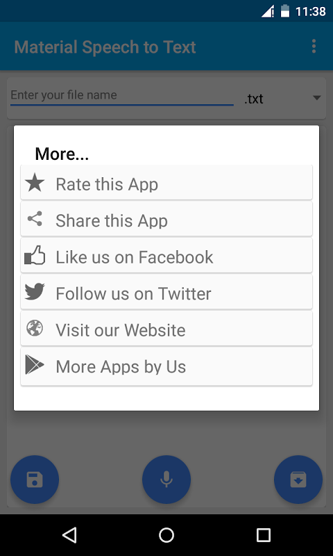 Obtain the text of what you speak from this app. Save your content in .txt format and .pdf format.