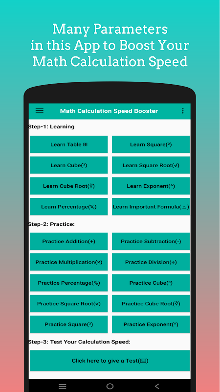 Math Calculation Speed Booster to najlepszy towarzysz pozwalający na łatwe i szybkie opanowanie obliczeń matematycznych. Niezależnie od tego, czy jesteś uczniem przygotowującym się do egzaminów konkurencyjnych, takich jak SSC, CPO, State PSC, BANK, RAIL itp., czy uczniem klasy 9, 10, 11, 12, czy profesjonalistą potrzebującym szybkich obliczeń, czy też entuzjastą matematyki szukającym wyzwań siebie, ta aplikacja została zaprojektowana, aby pomóc Ci udoskonalić umiejętności matematyczne i zwiększyć szybkość obliczeń.