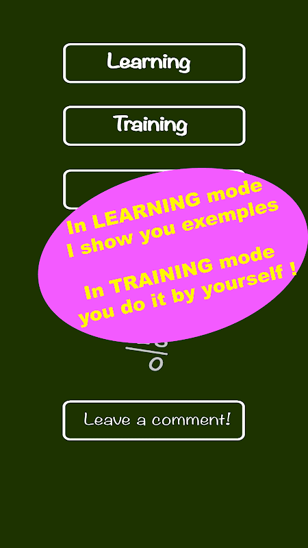 W trybie nauki, aplikacja pokazuje jak zrobić długi krok po kroku podziału. Każdy etap wykonywania matematyki jest wyjaśnione i szczegółowo. Można wybierać numery, dzielnik i dywidendy, albo niech aplikacja losowo wybrać dział do zrobienia.