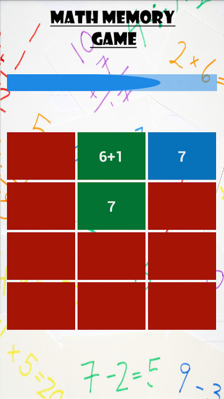 Matematyka Memory to gra edukacyjna dla wszystkich , zwłaszcza dla dzieci. Matematyka Memory Game todobry test mózgu i można poprawić szybkość obliczeń matematycznych . Po grać w tę ciekawą grę Matematyka pamięci dzieci będą na pewno obliczyć szybciej .