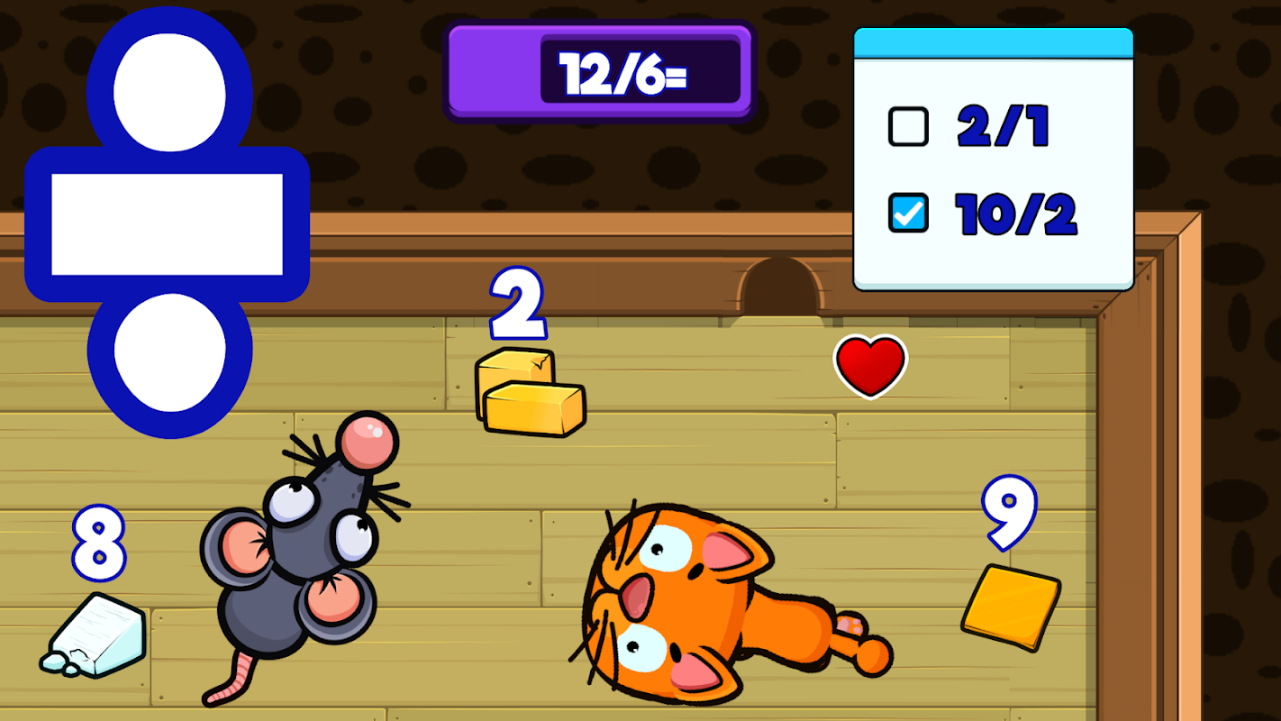 Prowadź mądrego myszkę przez pokoje pełne serów z poprawnymi odpowiedziami. Uważaj na pułapki i koty! Rozwiąż do 11 działań na poziomie i bezpiecznie doprowadź myszkę do norki, aby wygrać.