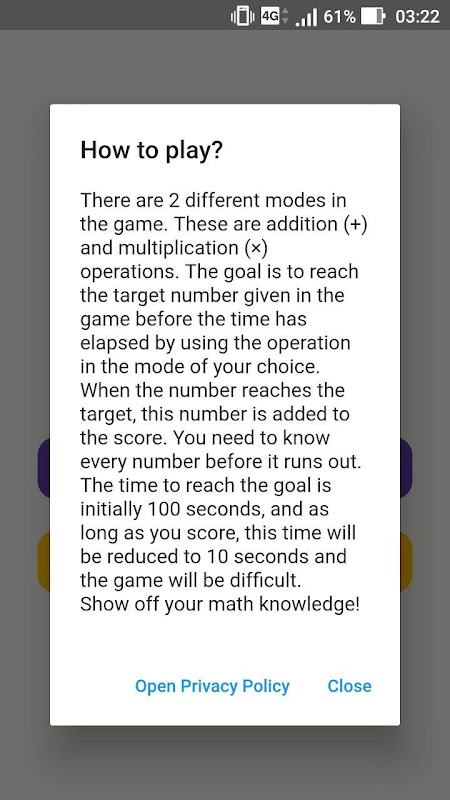 Are you ready to measure and develop mathematical knowledge? In the game, you must reach the target number by using one of the addition or multiplication operations. But hurry! Because it's limited. In addition, the higher the score, the shorter the target number will become harder. Go ahead, show your math knowledge!