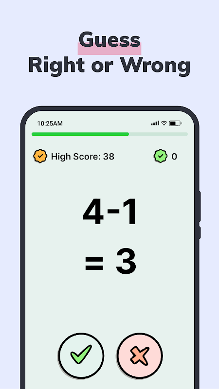 W Math Rush chodzi o szybkie myślenie i błyskawiczne obliczenia. Dzięki prostemu, ale wciągającemu formatowi gry otrzymasz serię równań dodawania i odejmowania. Twoje zadanie? Sprawdź, czy każde równanie jest poprawne, czy niepoprawne, zanim skończy się czas!