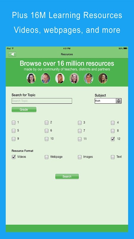 Free access to 16 million learning resources, including instructional videos, webpages, interactives, and more.