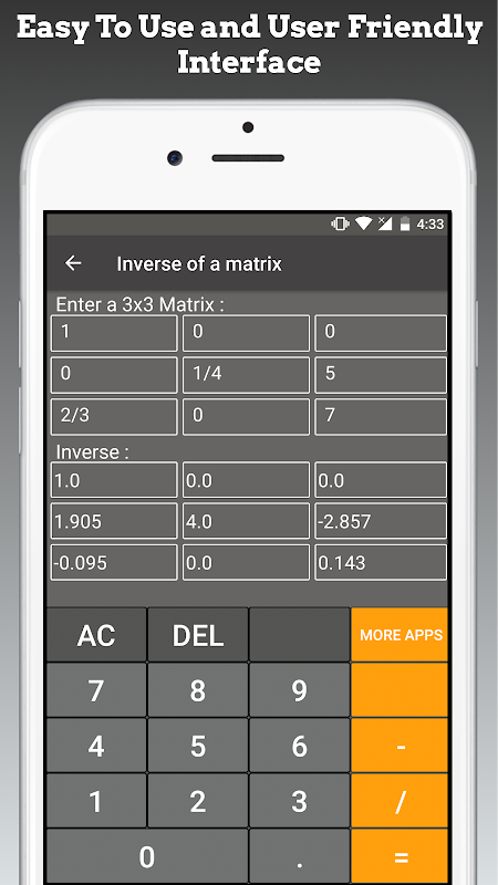 Ta darmowa aplikacja jest najlepszym kalkulatorem dla Matrix Inverse.