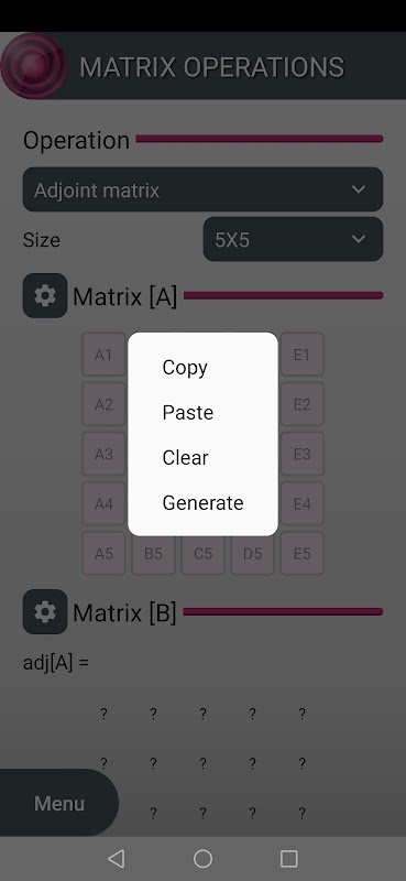 Matrix Operations to aplikacja wykonująca operacje matematyczne na macierzach, takich jak: