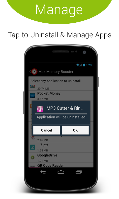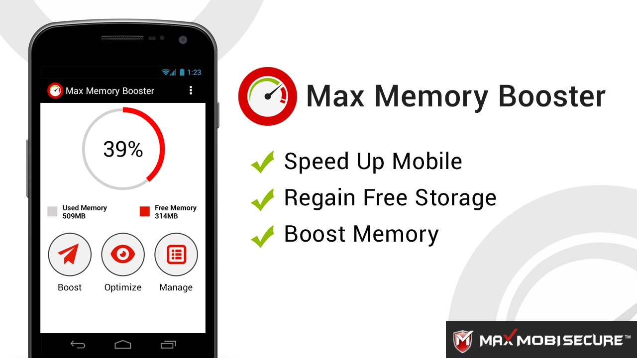 Max Memory Booster frees and boosts your Android devices memory by killing unwanted apps, cleaning cache and optimizing memory usage. It boosts system speed and reclaims memory space. It also features a task-killer and application uninstaller. Memory boosts can be performed from the app through the Quick Boost and Optimize Memory option as well as through the app widget.
