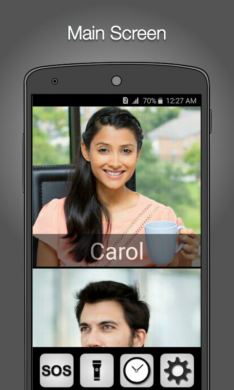 No need to type numbers, or search through big list of contacts. Just scroll images of your contacts and tap to make a call.