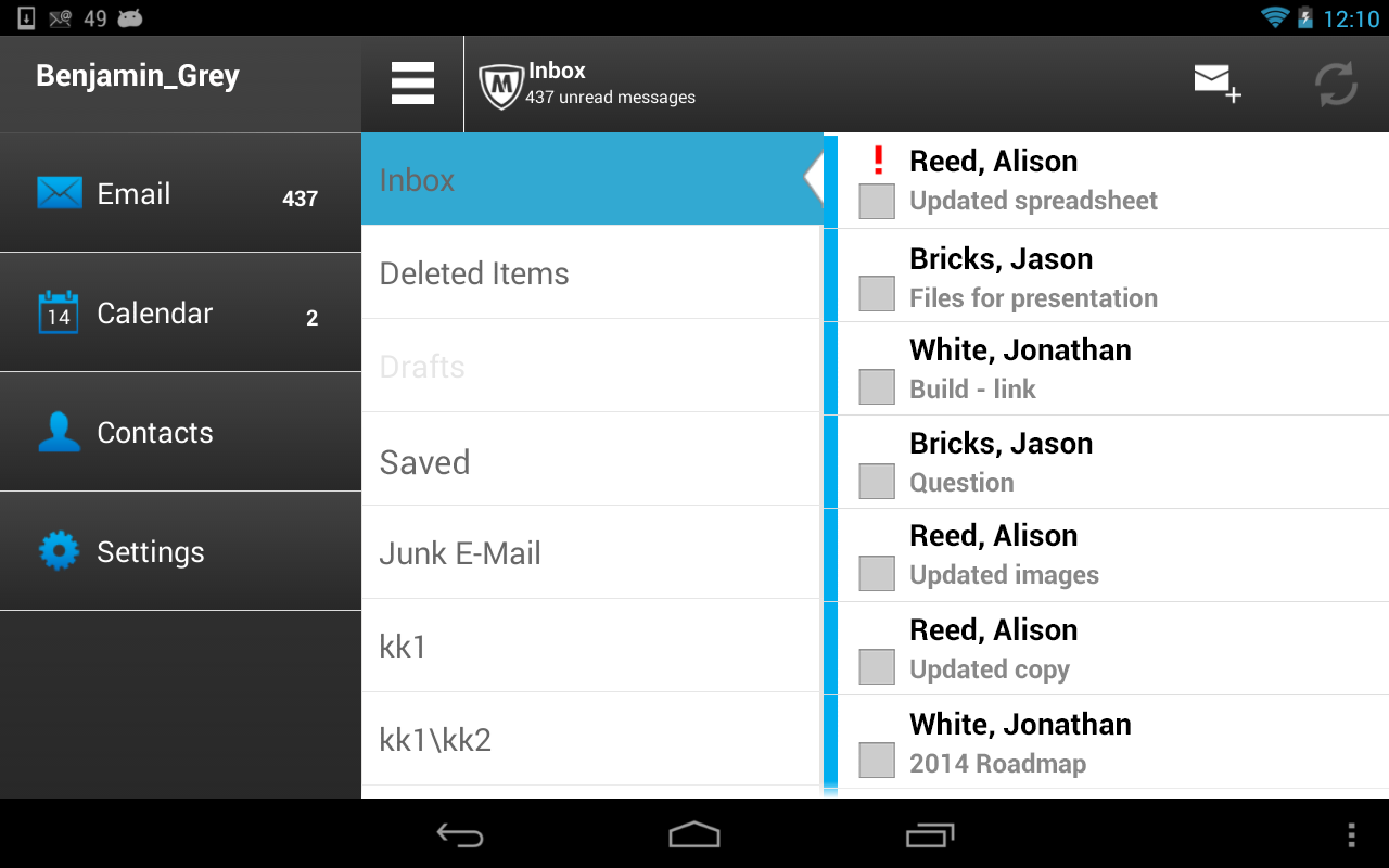 Nie trzeba nosić ze sobą dwóch urządzeń. Nie trzeba toczyć bojów z działem IT. Aplikacja McAfee Secure Container izoluje i szyfruje firmową pocztę e-mail, kontakty i kalendarz w odrębnej, blokowanej aplikacji, tak aby można było korzystać z urządzenia mobilnego i aby dział IT nigdy nie musiał się martwić o to, że poufne dane firmowe znajdą się w niepowołanych rękach.
