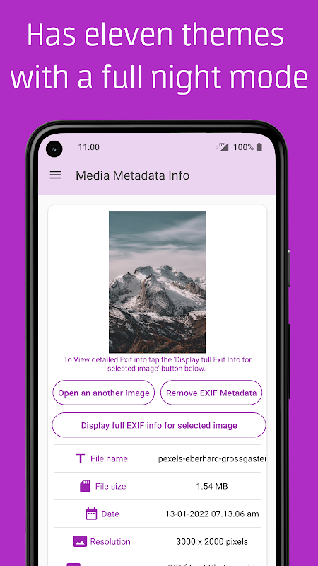 Ważna uwaga: Informacje o metadanych multimediów wyświetlają metadane EXIF na podstawie wybranego typu obrazu, a także umożliwiają czyszczenie osadzonych metadanych EXIF. W przypadku obrazów zarejestrowanych za pomocą aparatu analizowane i wyświetlane są różne metadane obrazu, natomiast w przypadku obrazów takich jak zrzuty ekranu i tylko mniej metainformacji, takich jak rozdzielczość, wyświetlana jest data.