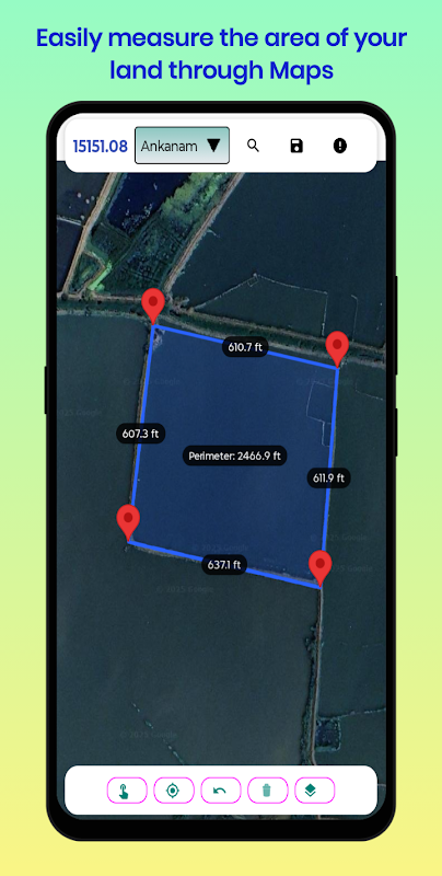 • Pomiar terenu na mapie GPS (podstawowy) — przejdź się po działce lub dotknij punktów, aby obliczyć powierzchnię i obwód w czasie rzeczywistym. Idealne rozwiązanie dla gospodarstw rolnych, makiety, otwarte działki i wizyt na miejscu. Powierzchnia jest podawana w różnych jednostkach, które są powszechnie stosowane w ewidencji gruntów Andhra Pradesh.