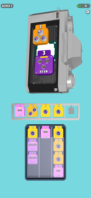Klikaj elementy w odpowiedniej kolejności, aby umieścić je w urządzeniu, aby przejść poziom