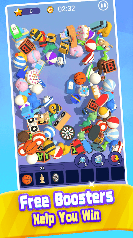 Merge Master needs you to find and match identical 3D objects to make them pop among a tangled mess. When all 3D objects on the ground are collected before the time is up, you can pass the current level and get rewards! One connects worth 1 star, the more triple connects you can match, the more stars you will win, and the more rewards you will collect!
