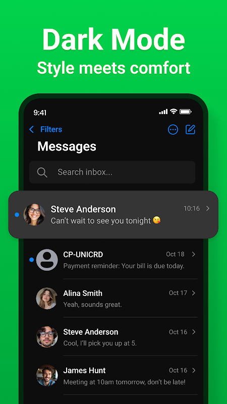 • Inteligentna skrzynka odbiorcza – Organizuj rozmowy, oznaczaj wiadomości jako przeczytane i nadawaj priorytety ważnym czatom.