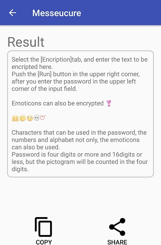· Zaszyfrowane zdania szyfrowane z tej aplikacji mogą być udostępniane i wysyłane do innych aplikacji
