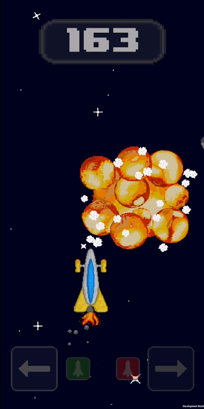 The universe is full of meteorites and your task is to maneuver your spaceship as far as possible into the depths of the universe without blowing up.