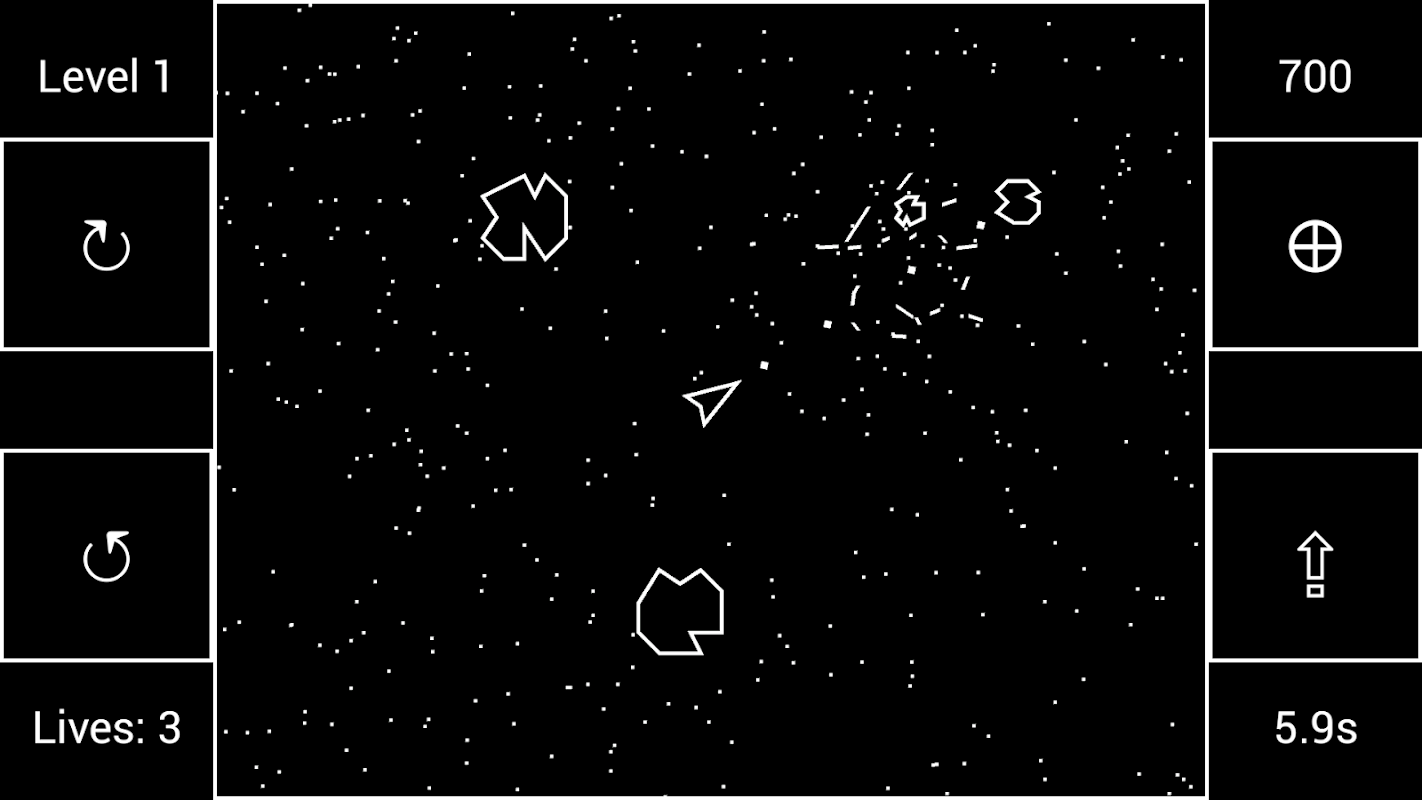 Aby uzyskać dodatkowe wyzwanie, wypróbuj tryb rotacji inercyjnej, w której statek nadal obraca się po zdjęciu palca z przycisku. Unikaj zbyt szybkiego poruszania się, ponieważ twój statek jest delikatny i może poradzić sobie z tak dużym obciążeniem rotacyjnym.