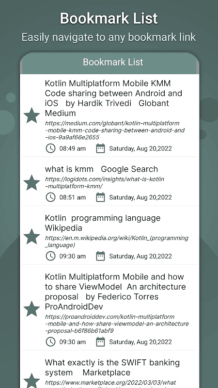 Otwieracz plików MHTML i przeglądarka MHT to bezpłatna aplikacja, dzięki której możesz odczytać dowolny plik MHT, a także łatwo udostępnić go na dowolnej platformie społecznościowej. Aplikacja czytnika MHTML przechowuje historię wszystkich odwiedzanych stron internetowych. Możesz także dodać do zakładek dowolny link do strony internetowej i łatwo otworzyć dowolny link do zakładki w aplikacji.