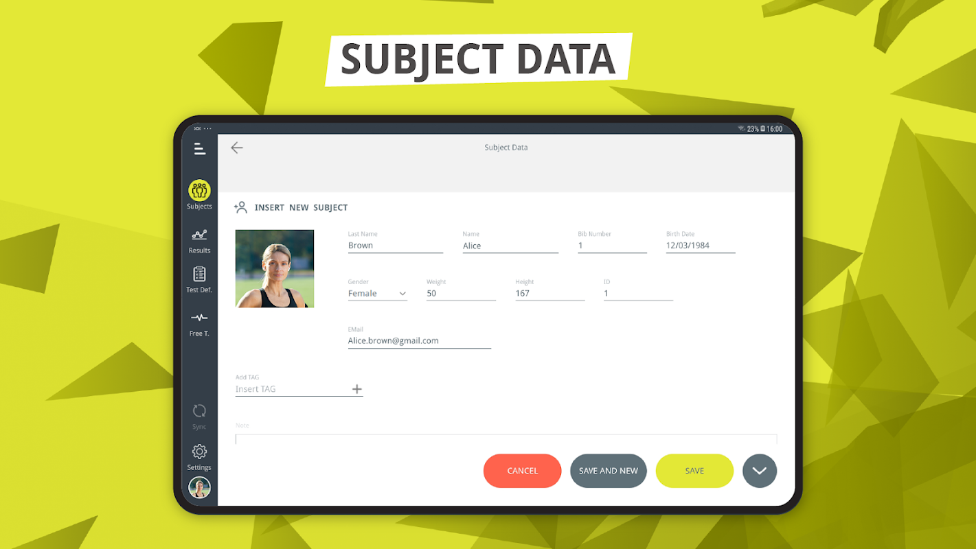 Możliwe jest pogrupowanie sportowców poprzez przypisanie każdemu sportowcowi różnych tagów. Ułatwia to zarządzanie sesjami testowymi i analizą danych.