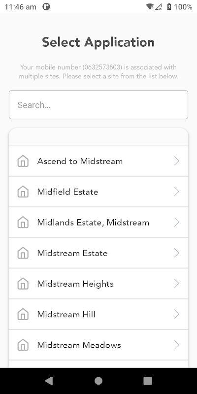 Midstream VMS App dla mieszkańców. Raz zarejestrowani mieszkańcy mogą zapraszać gości korzystając z kontaktów w telefonie. Aplikacja zapewnia funkcjonalność wysyłania zaproszeń przez SMS, iMessage lub WhatsApp.