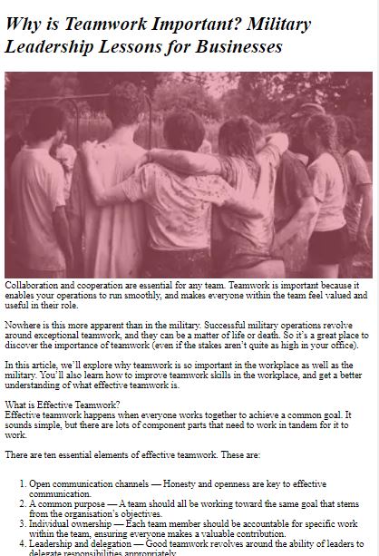 Dynamika zespołu: znaczenie pracy zespołowej w operacjach wojskowych, w tym role i obowiązki w jednostce.