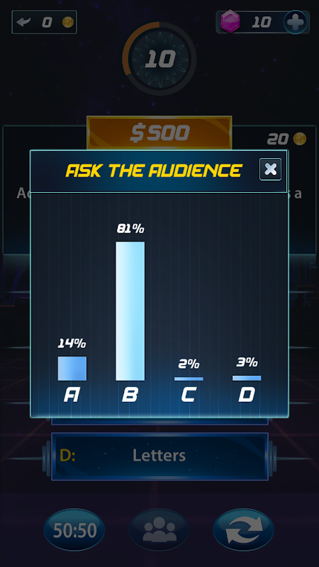 Trivia GK: General Knowledge Questions is a general trivia game. In this game, you have to answer 15 challenging questions of general knowledge to win the million and became a Billionaire.
