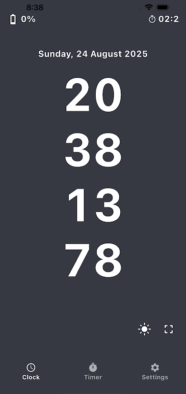 Zanurz się w pozbawionym rozpraszaczy widoku pełnoekranowym. Idealny do użytku jako zegar biurkowy lub do zadań wymagających skupienia.