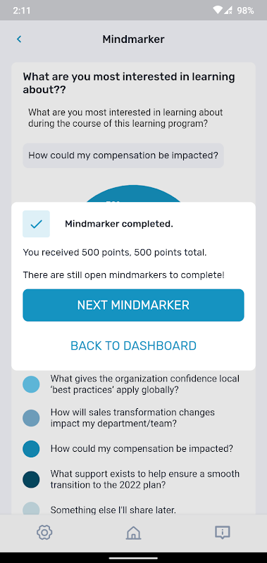 Mindmarker jest program oparty na cloud wzmocnienie szkolenia, który jest stosowany w celu poprawy siły roboczej. Program Mindmarker automatycznie wysyła wiele typów wiadomości (filmy, zdjęcia, pytania, e-maile i inne pliki) do grupy użytkowników, w określonych dniach i godzinach. Komunikaty te są nazywane Mindmarkers i często zawierają pytania. Ta aplikacja pozwala użytkownikom odbierać Mindmarkers i monitorowania ich postępów i osiągnięć w programie szkoleniowym. Odwiedź www.mindmarker.com uzyskać więcej informacji.