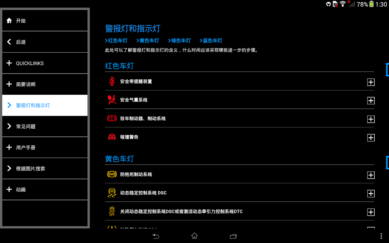 首次使用时,您需要网络连接。输入底盘号码(VIN)之后,下载与您车辆匹配的用户手册,用户手册无网络连接也可用。在 Driver’s Guide 中可以管理多个车辆。
