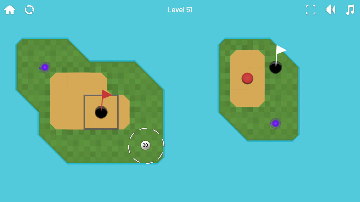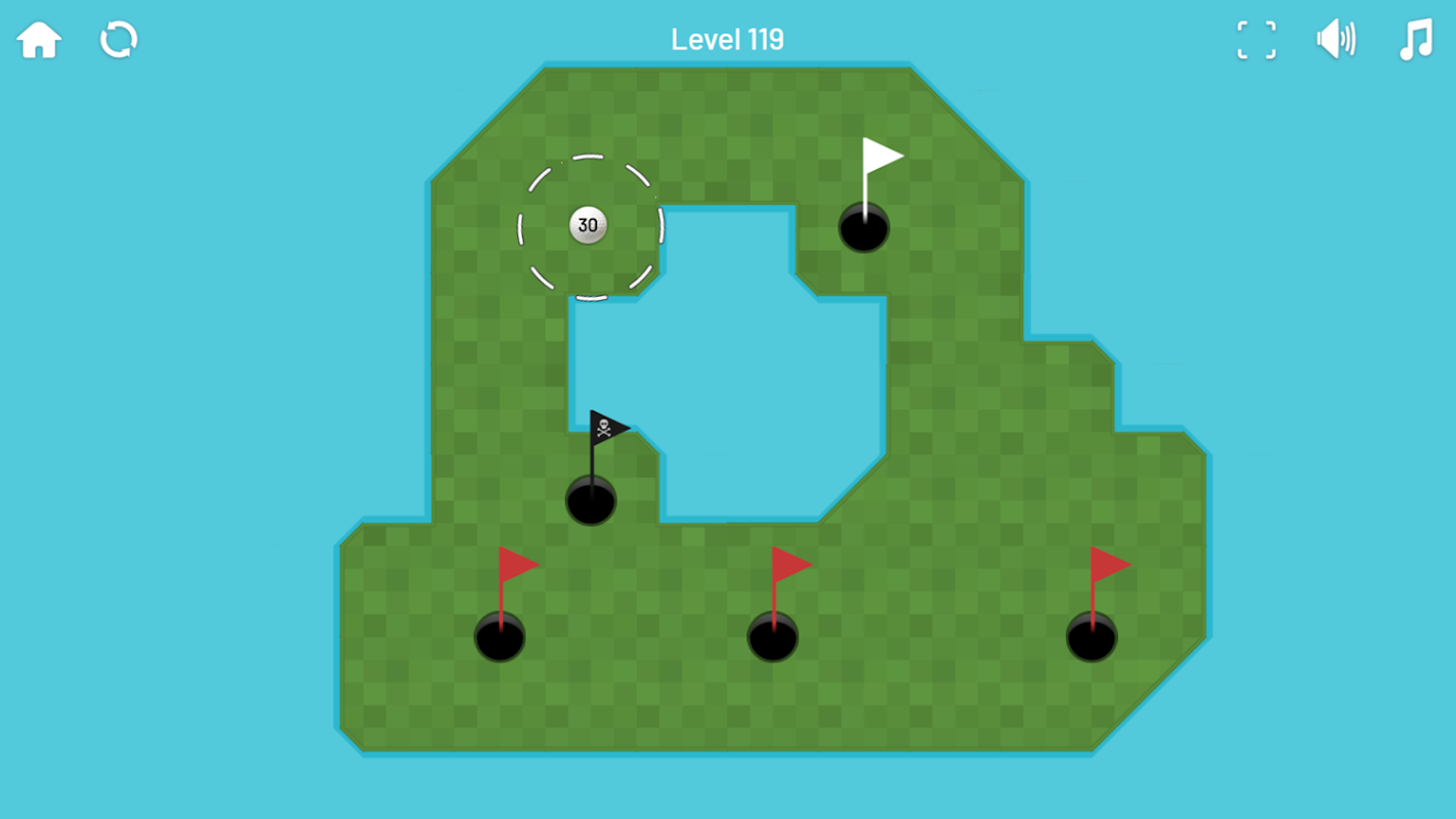 Wbij piłkę w każdy z dołków oznaczonych czerwoną lub białą flagą.
