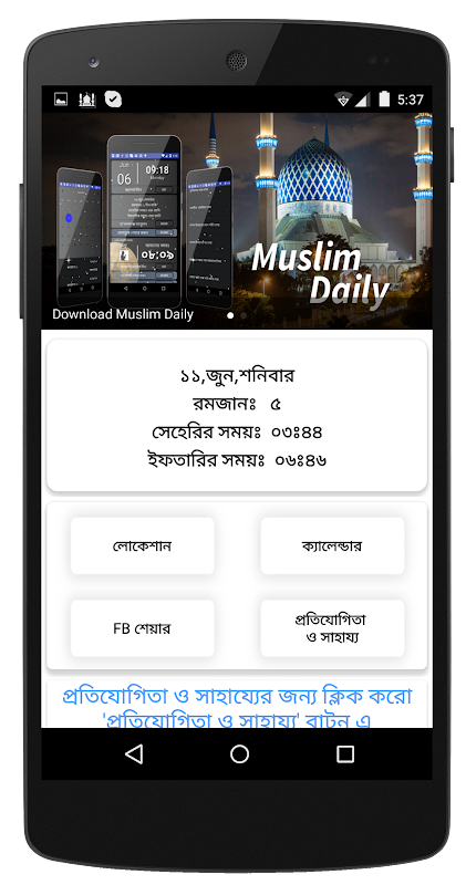 আপনি যদি পরিপূর্ণ একটি অ্যাপ খুঁজেন এই রমজানের জন্য তবে এখুনি ডাউনলোড করুন আমাদের অপর একটি অ্যাপ Muslim Daily ঃ