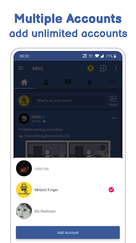 Poznaj Mini na Facebooku, najlepsza alternatywa dla Facebooka - lekka, wysoce konfigurowalna i przyjazna dla baterii, z rygorystyczną polityką „braku śledzenia”, aby zapewnić ochronę prywatności. Mini to najpełniejsza alternatywa dla Twojej ulubionej sieci społecznościowej