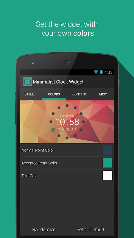 • Customise the widget (text, background, etc.) with your own colour themes.
