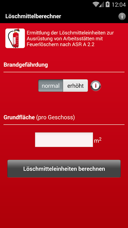 - Mit dem Löschmitteleinheiten-Berechner können je nach Grundfläche leicht die benötigten Löschmitteleinheiten zur Ausrüstung von Arbeitsstätten mit Feuerlöschern nach ASR A2.2 ermittelt werden.