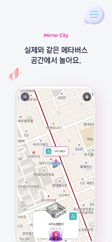 실제 공간이 그대로 적용된 메타버스 공간에서 나를 표현하고 여러 사람들과 함께 이야기를 나눠요.